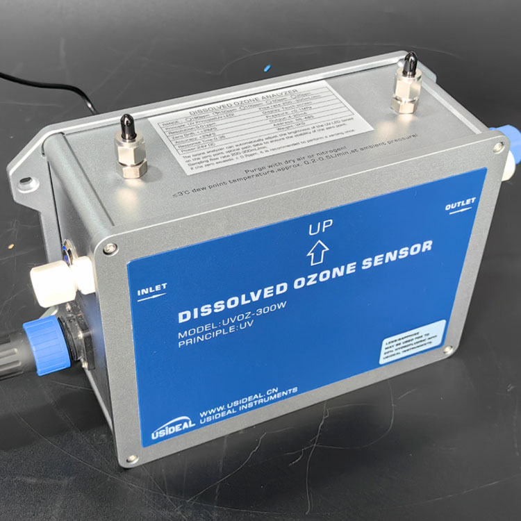 Detektionsprincip: UV-metod med dubbla vägar, som används för analys och detektering av upplöst ozonvattenkoncentration i kranvatten, rent vatten eller halvledarindustri.